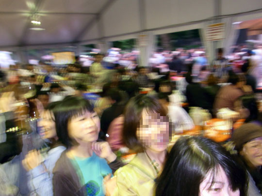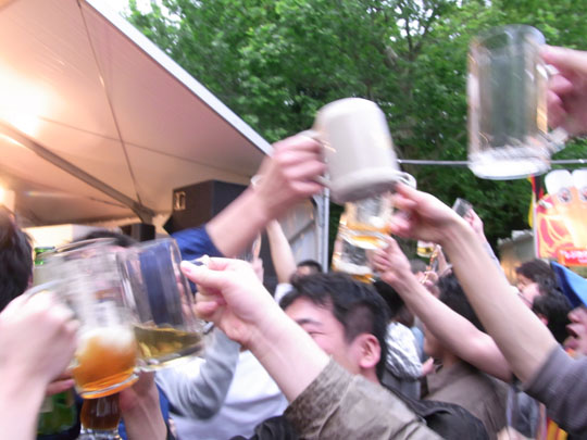 30人くらいで肩を持ち合って列車状態になって会場をグルグル回ってハイタッチと乾杯しまくりの様