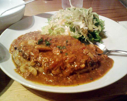 で、コシードで昼メシ 今日は俺のド定番の牛スジソースのチーズハンバーグ 相変わらず美味過ぎる